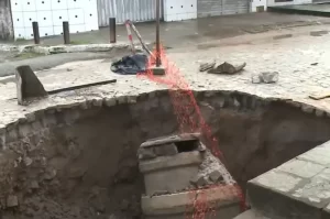 Uma cratera se formou na Rua Artífice Pedro Marcos de Souza, no bairro do Valentina, zona sul de João Pessoa,